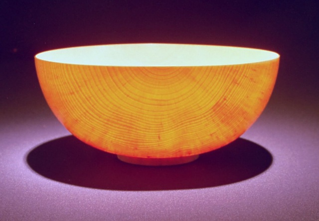 Schale aus Ahorn, 22 x 9,5 cm, Wandstärke durchgehend 1,5 mmWandung so dünn, dass das Licht durchscheint.